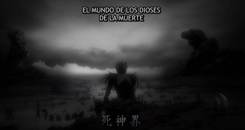 El episodio inicial de Death Note abre con una introducción impactante. La escena se desarrolla en el mundo sobrenatural del Shinigami, una dimensión oscura y desolada habitada por estos dioses de la muerte. La primera imagen que vemos es la de Ryuk, un Shinigami que se muestra aburrido y cansado de su existencia eterna. La atmósfera es sombría, y la animación refleja el tono ominoso que caracteriza al anime. La música de fondo, con un aire casi ceremonial, refuerza la sensación de que estamos a punto de adentrarnos en una historia profunda y compleja.