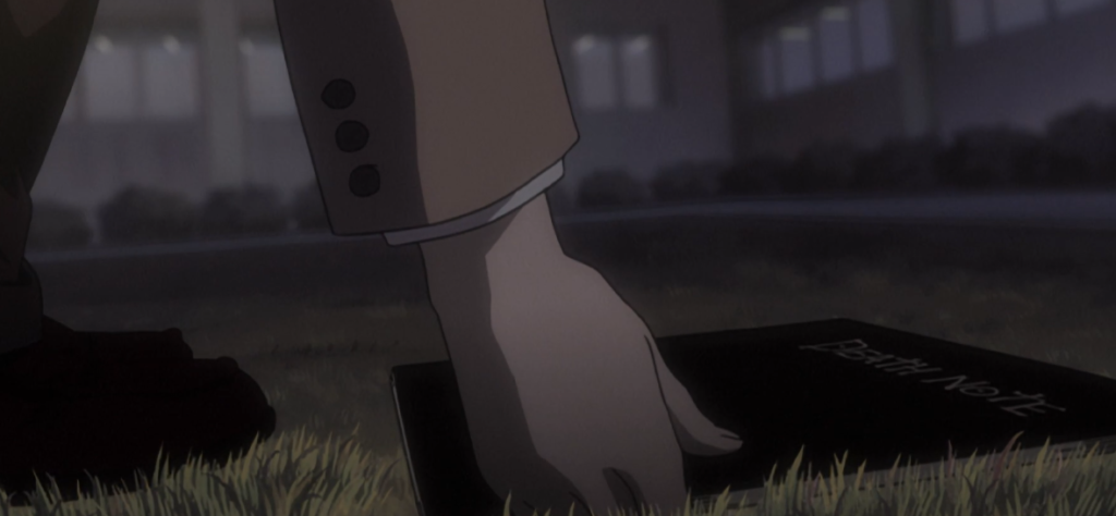 Mientras Light camina por el patio de la escuela, observa un cuaderno negro con la inscripción “Death Note” escrita en la portada. Intrigado, lo recoge y comienza a leer las instrucciones en el interior. La explicación es detallada: el cuaderno permite a quien lo posea escribir el nombre de una persona mientras visualiza su rostro para causar su muerte. Además, si no se especifica la causa de muerte, la víctima morirá de un ataque al corazón. Light inicialmente toma esto como una broma o una curiosidad sin importancia, pero su interés crece cuando comienza a entender la magnitud del poder que tiene en sus manos.