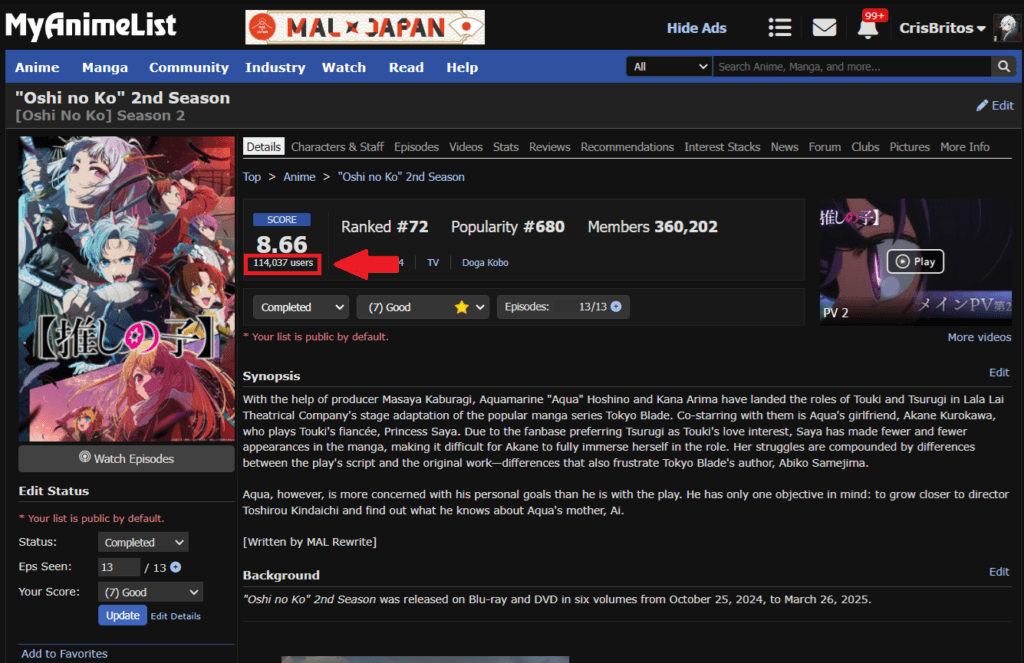 8. Nogizaka Haruka no Himitsu (68.671 usuarios)